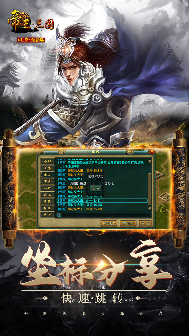 立即下载 大小:60.79M 点击:13672次 帝王三国 帝王三国 支 持:安卓 分 类:手机游戏 大 小:60.79M 版 本:1.62 点击量:13672次 发 布:2022-12-20 12:56:41 手机扫码免费下载 #帝王三国截图 #帝王三国简介